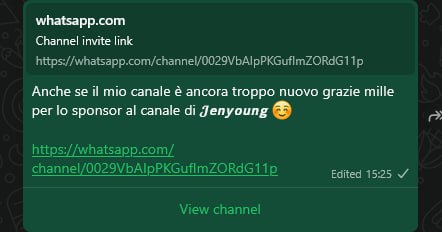 Anche se il mio canale รจ ancora troppo nuovo grazie mille per lo sponsor al canale di ๐๐๐ฃ๐ฎ๐ค๐ช๐ฃ๐ โบ๏ธ https://whatsapp.com/channel/0029VbAIpPKGufImZORdG11p