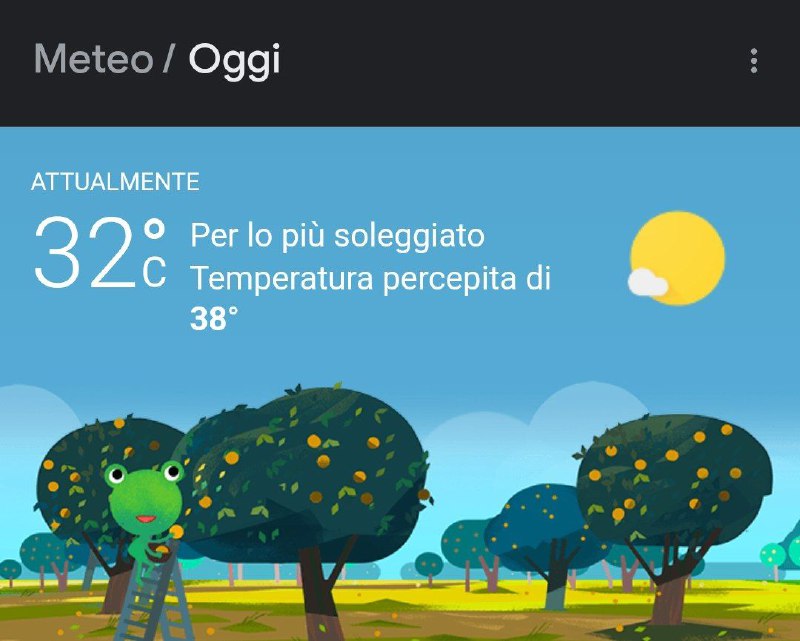 buongiorno con i 32 gradi alle 9.30 di mattina con 38 percepiti