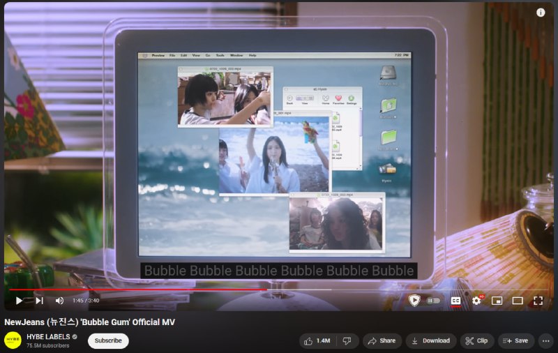 the mv for bubble gum by newjeans is SO GOOD https://www.youtube.com/watch?v=ft70sAYrFyY
